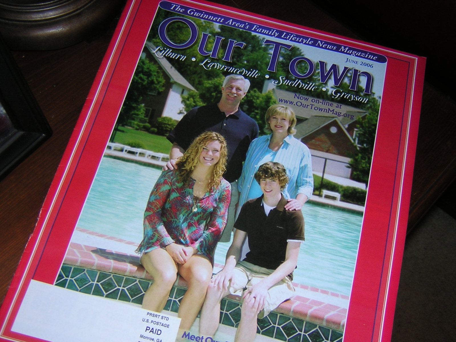 Oh, look! A visual aid for the story: Copy of Our Town Magazine in which my first comic musings can be found. Bonus: Name the Olympic swimmer on the cover.