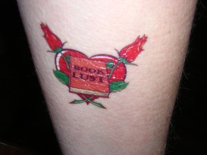 So, I ordered my little book and kept it hidden away till now. Just a few minutes ago, I picked out my favorite t-word and ran upstairs and slapped one on my body. And I think it looks swell, in a book-lusty sort of way. But why, you may ask, all the sneaking around?