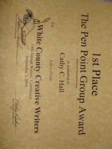 I won First Place (the Pen Point Group Award) in the mystery fiction category for the White County Creative Writers. (Wheee!) The story, “Like a Pirate,” is one of my favorite stories. I wrote it three years ago. The original was a diamond in the rough (not that I realized that fact three years ago). It needed polishing details, but the plot was good. And every time that story got rejected, I worked on it just a little bit more.