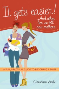 Claudine Wolk is the author of It Gets Easier! and Other Lies We Tell New Mothers, so you can see that she and I already share a similar world view. But she also had some deep thoughts to share about the “behind the scenes” stuff with her book. As you know, I’m always looking for insider writer info. And you are, too, right? Take it away, Claudine! (Presumably she’s telling the truth here…Okay, I’m kidding. Claudine would never lie to fellow writers in the trenches, right? Right????)