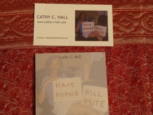 Just between you and me, I seem to have the same thing going on with business cards that I have with bathing suits. (Hmmmm…they both begin with B’s. Coincidence? I think not.) Namely, I’m on a mission to find perfection. And yet, since both business cards and bathing suits involve Cathy C. Hall, in either the flesh or a likeness thereof, perfection is a tad difficult to come by. Hence, the whole thing taking on that “Mission: Impossible” status.