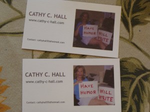 3. Hey Cathy,Maybe you should use the first set of cards to advertise your dark humor pieces?DonnaP.S. Well, I'll brepown if I know what my secret verification word brepown means.