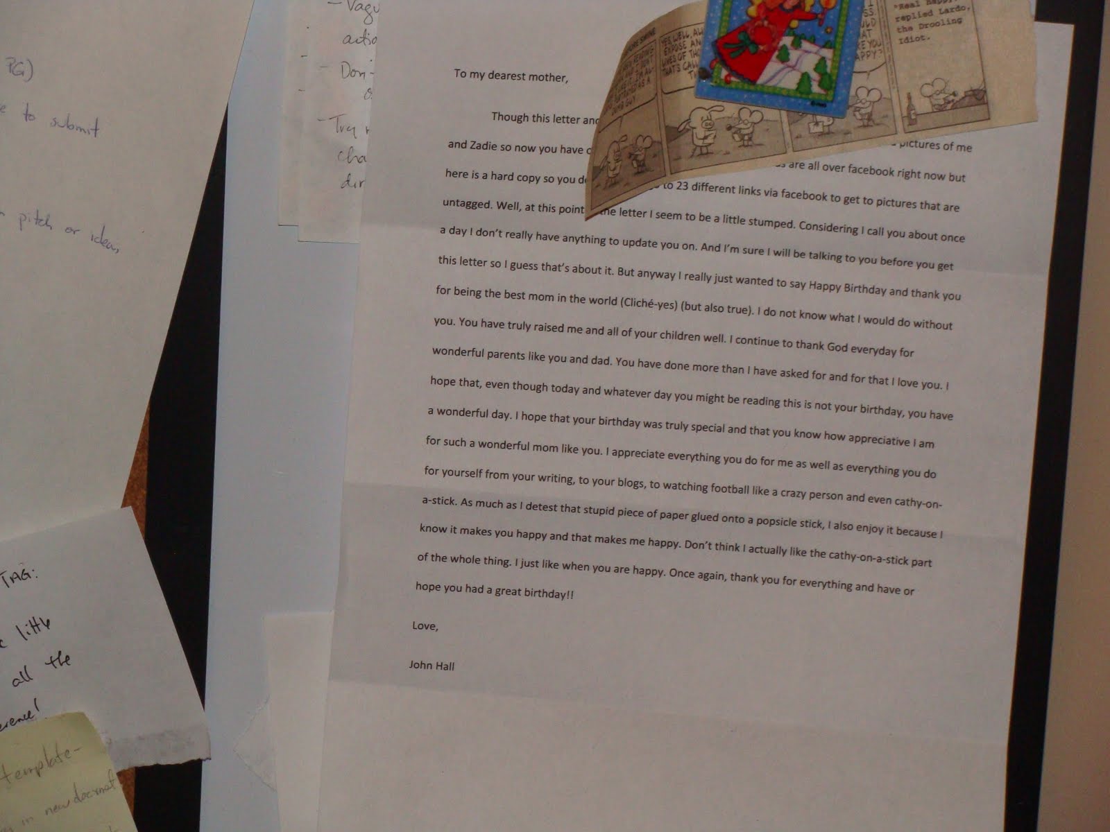 It’s a birthday letter to yours truly from the Juniorest Hall. And no, it’s not my birthday. It’s another perfectly good reason.