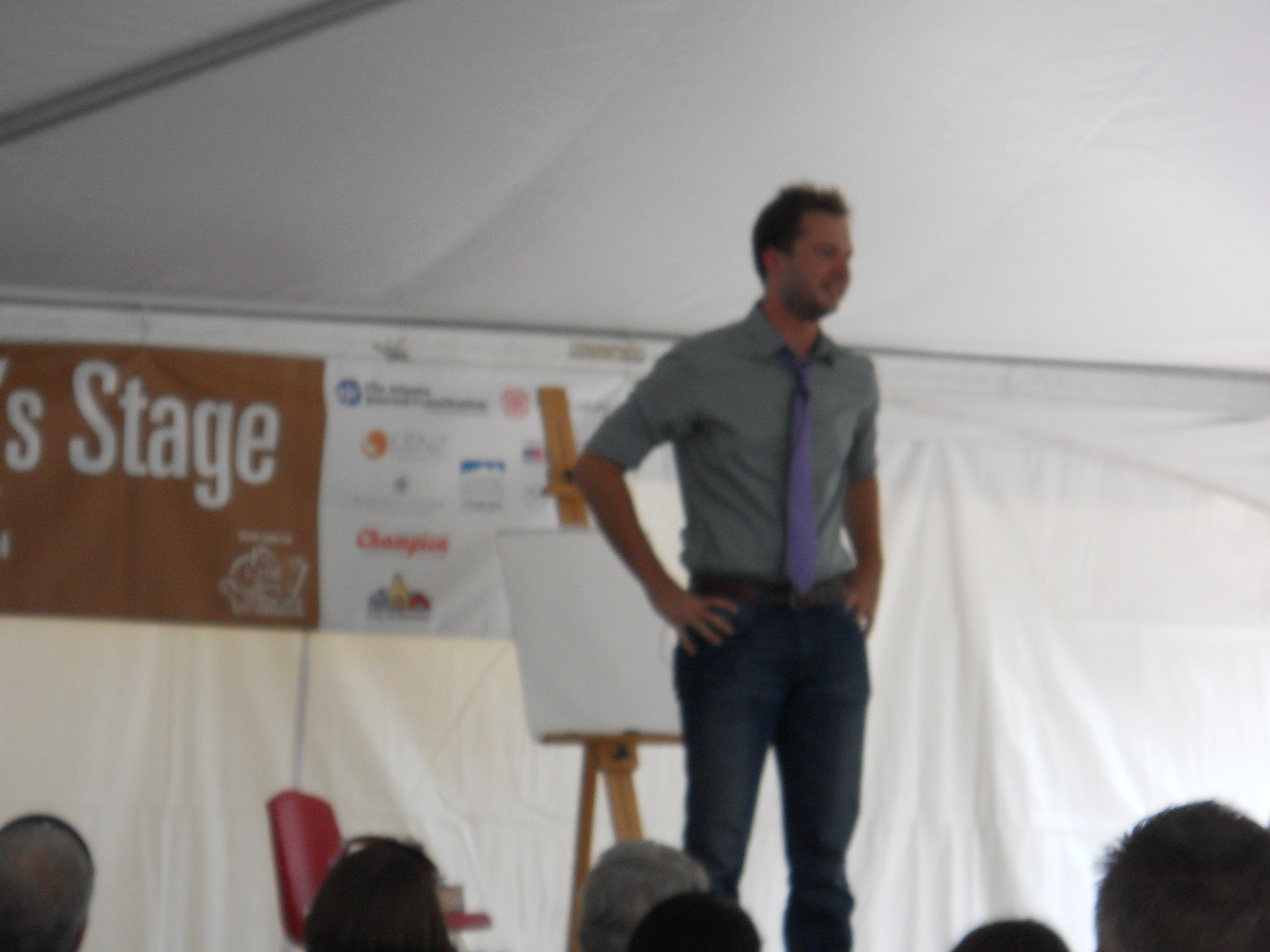 I mean the VERY LAST MINUTE. A DBF helper let the few us at the very back of the line know that Ms. Bray may not be able to stay (I made a poem!). She HAD to catch that plane. So when I got up there, and she was still signing, I just said, “Here! Hold this, please! It’s Cathy-on-a-Stick and I have a blog and really, I’m a very nice person but I never know what Cathy-on-a-Stick might say.”