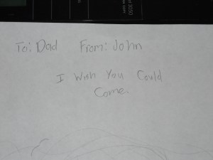 Sometimes, when I’m piddling trying to work through manuscript snafus, I clean up around the old home office. Recently, I came across this card, penned by (then 8 year-old) Juniorest Hall. Apparently, we were going to the beach and leaving The Beneficent Mr. Hall behind.