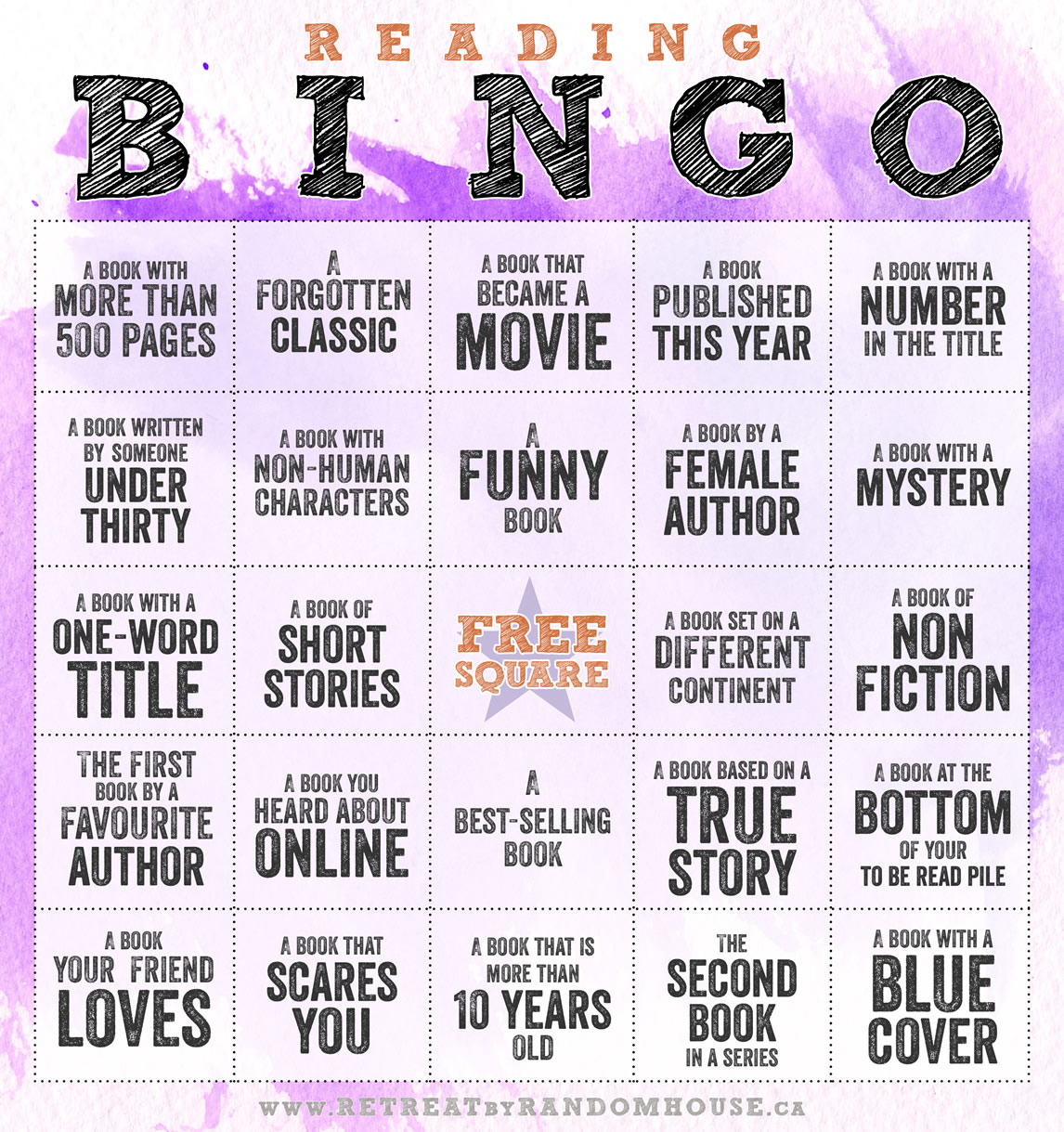 When I found this fun game over at Retreat for Random House, I thought of you, too. I realize that most writers would read anytime, anywhere, anyway. But this just adds a whole ‘nother level of excitement to reading. Because hey! Who doesn’t love Bingo?