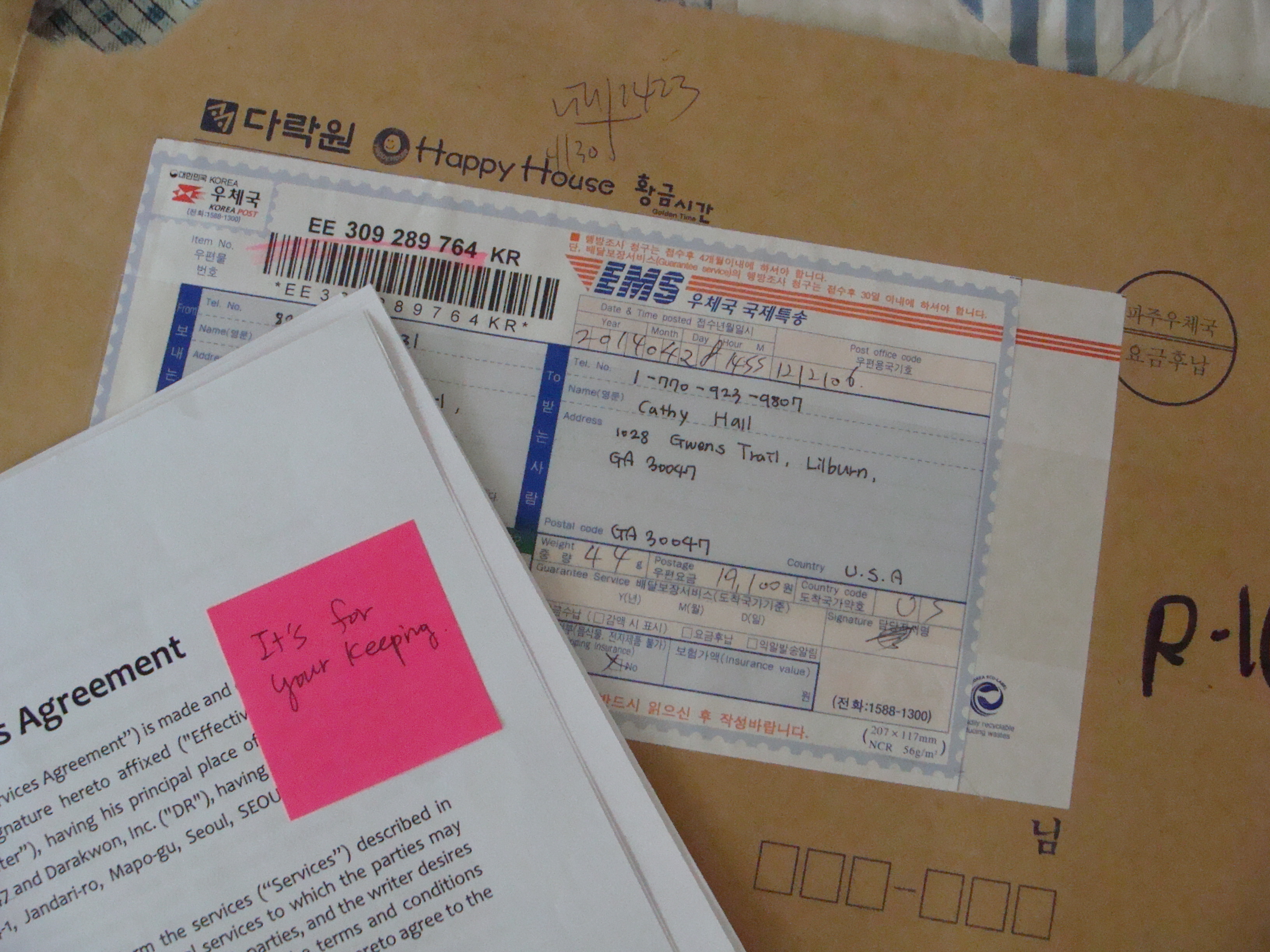 The other package I received was a contract. It’s a contract from a Korean company that publishes in the education market and I’d just completed a book for 4th graders. And though I’m glad to have this opportunity, I hadn’t thought of making a big deal about it because…because it’s the education market, I guess.